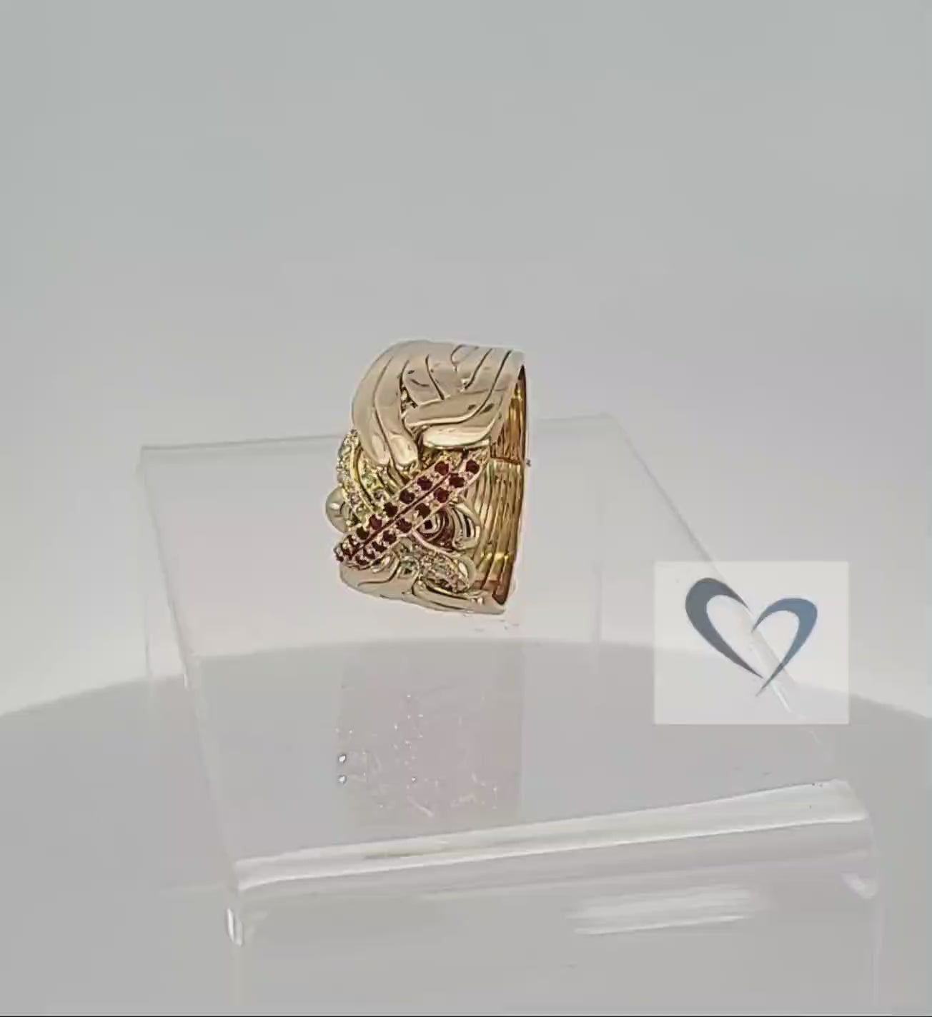 14K Gold 8 Band Diamond Ruby Puzzle Ring 8B141DRUB