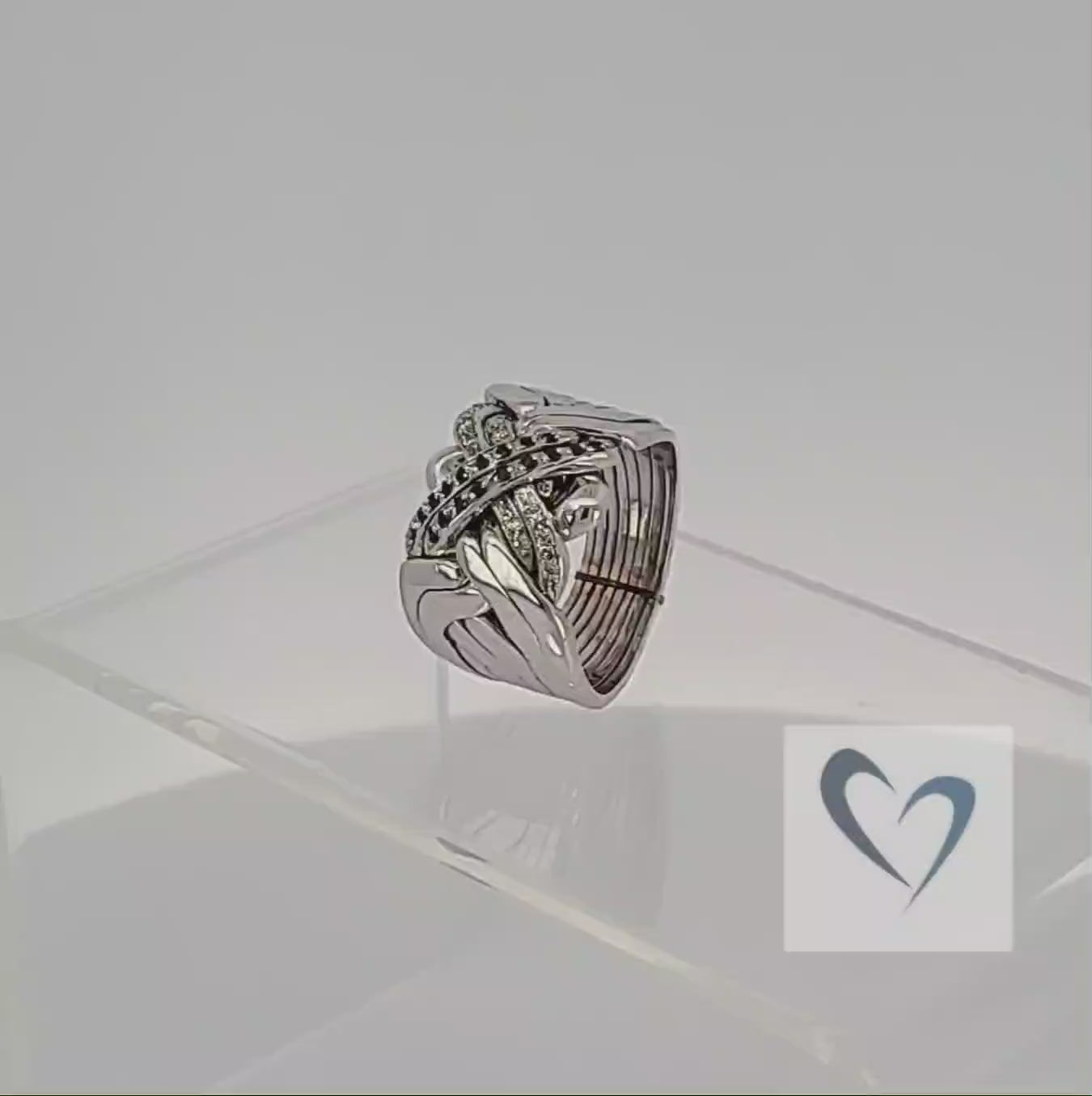 Experience the artistry and luxury of the 14K 8 Band Diamond & Sapphire Puzzle Ring, a bold statement piece handcrafted for those who appreciate timeless design and lasting quality.
